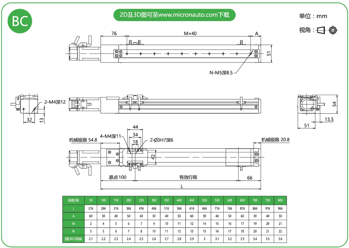 標(biāo)準(zhǔn)有效行程: 100~800mm(間隔50mm)