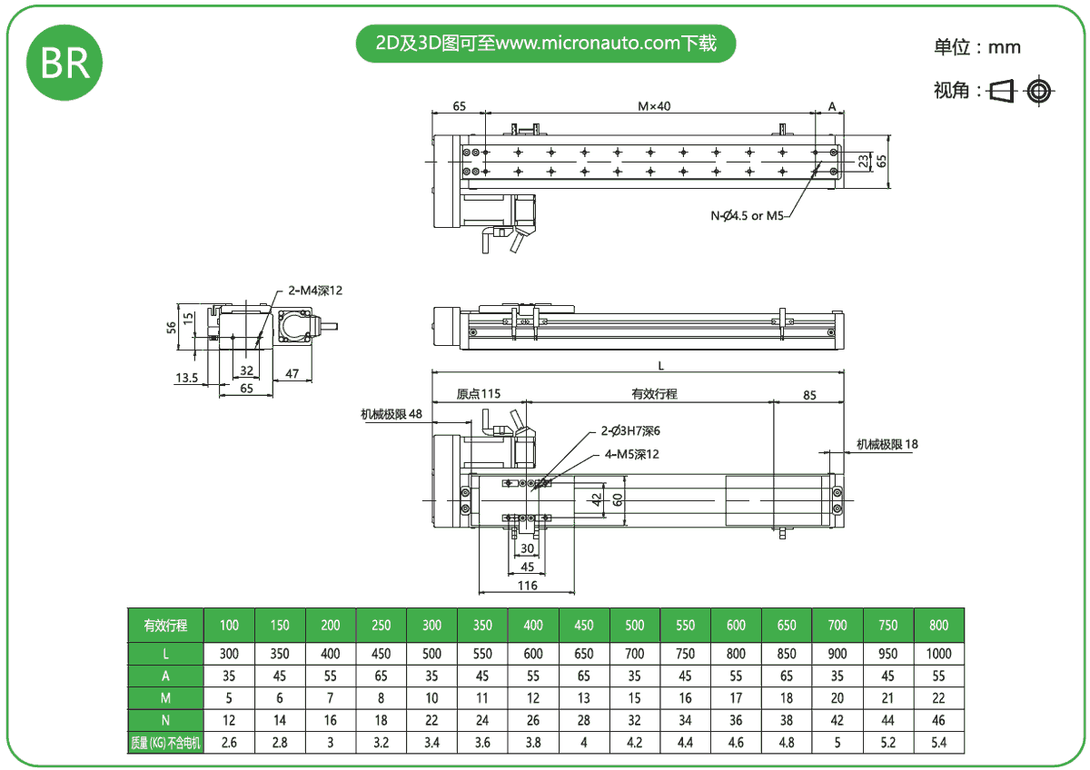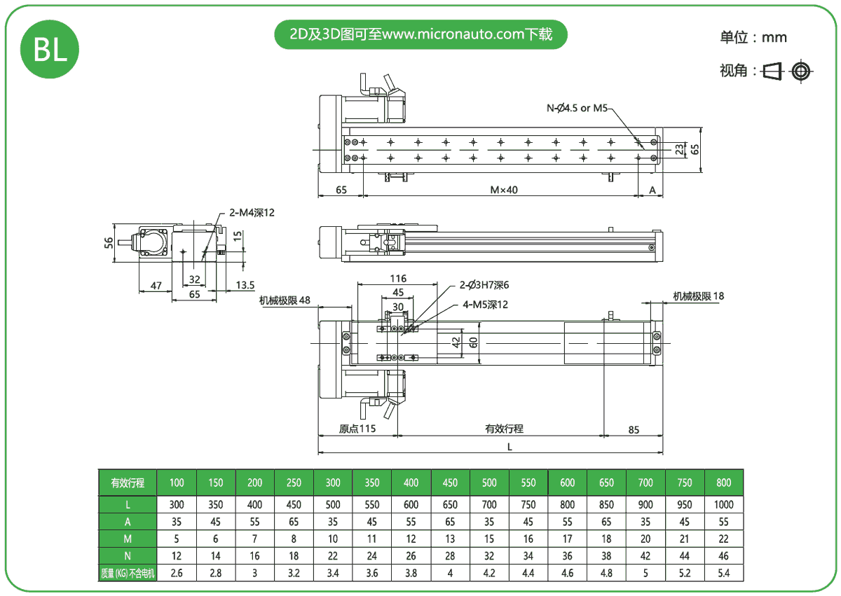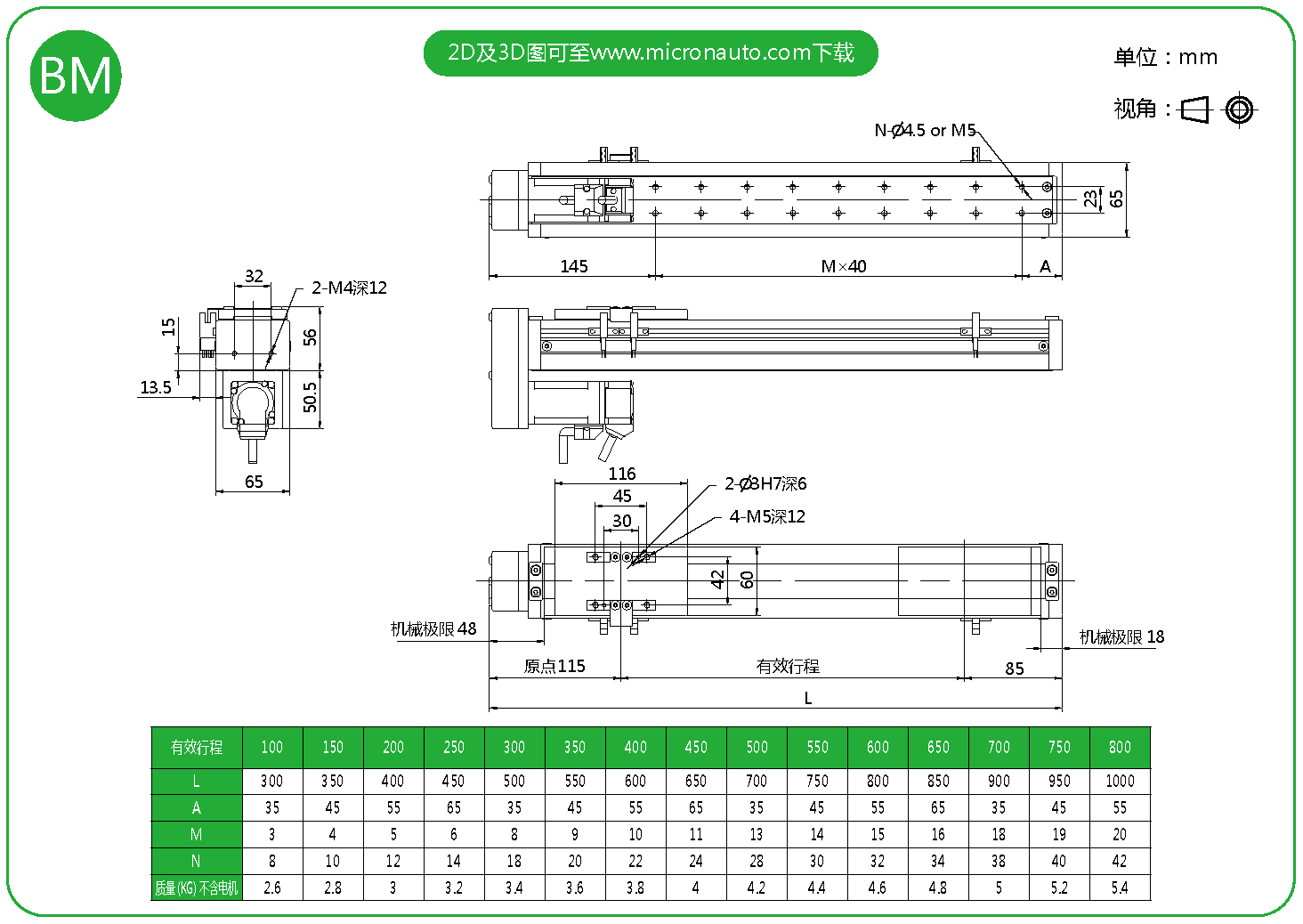 標(biāo)準(zhǔn)有效行程: 100~800mm(間隔50mm)