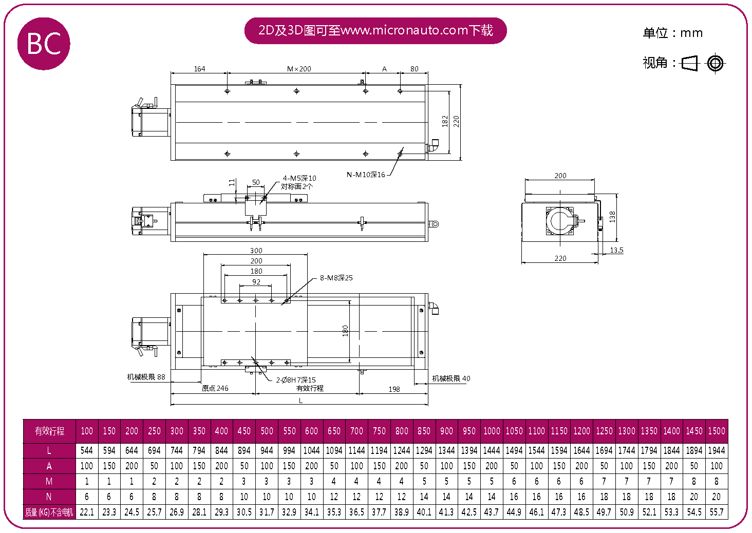 標(biāo)準(zhǔn)有效行程: 100~1500mm(間隔50mm)