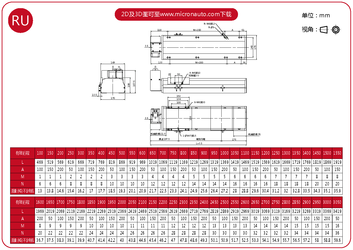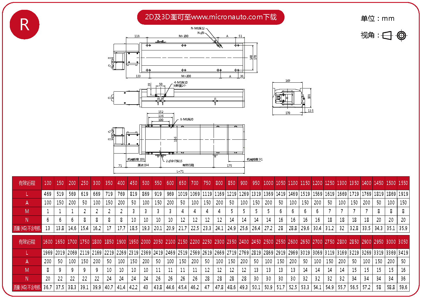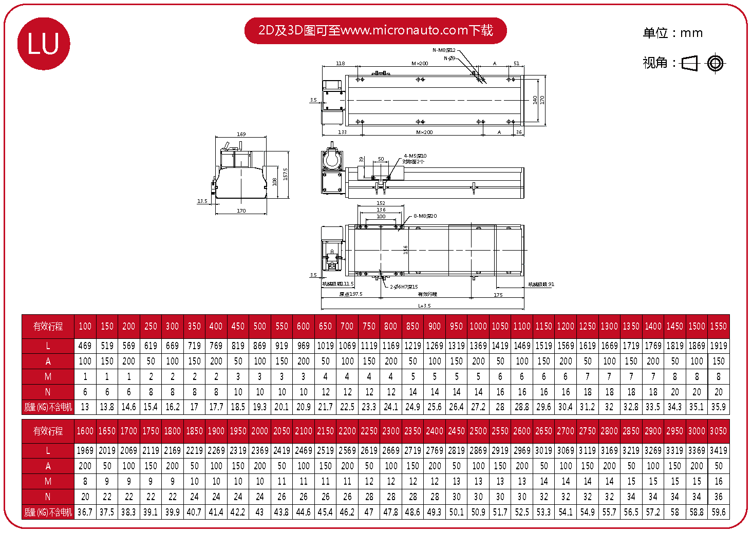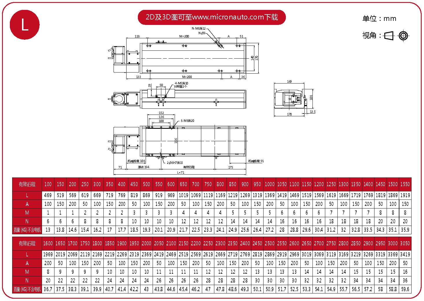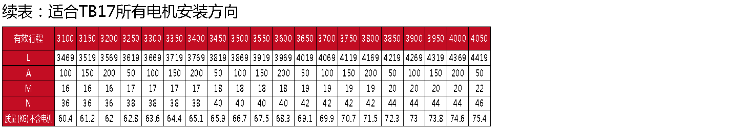 標(biāo)準(zhǔn)有效行程: 100~4050mm(間隔50mm)