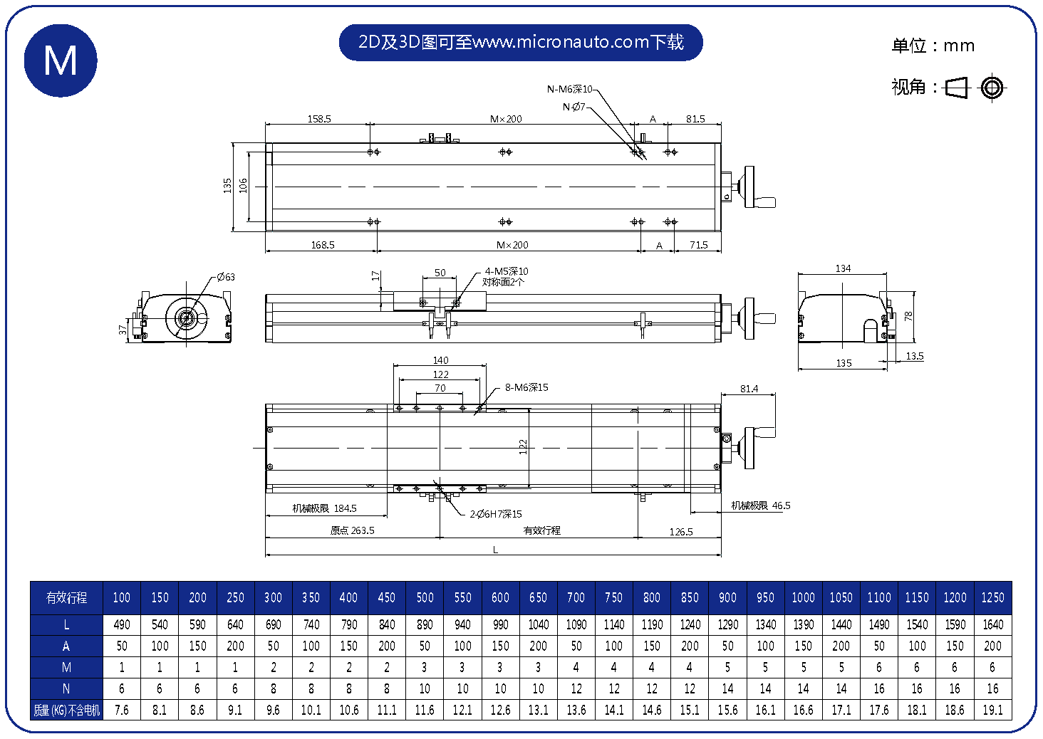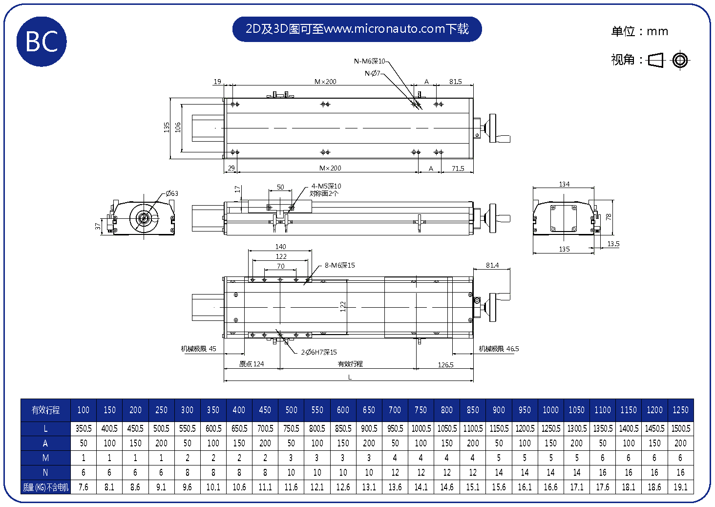 標(biāo)準(zhǔn)有效行程: 100~1250mm(間隔50mm)